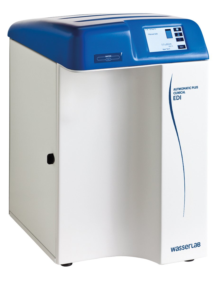 Sistemas de purificación de agua especialmente diseñados para alimentación automática de analizadores de diagnostico clínico. Dotados de sistema de seguridad, para evitar la parada de la cadena de analizadores.